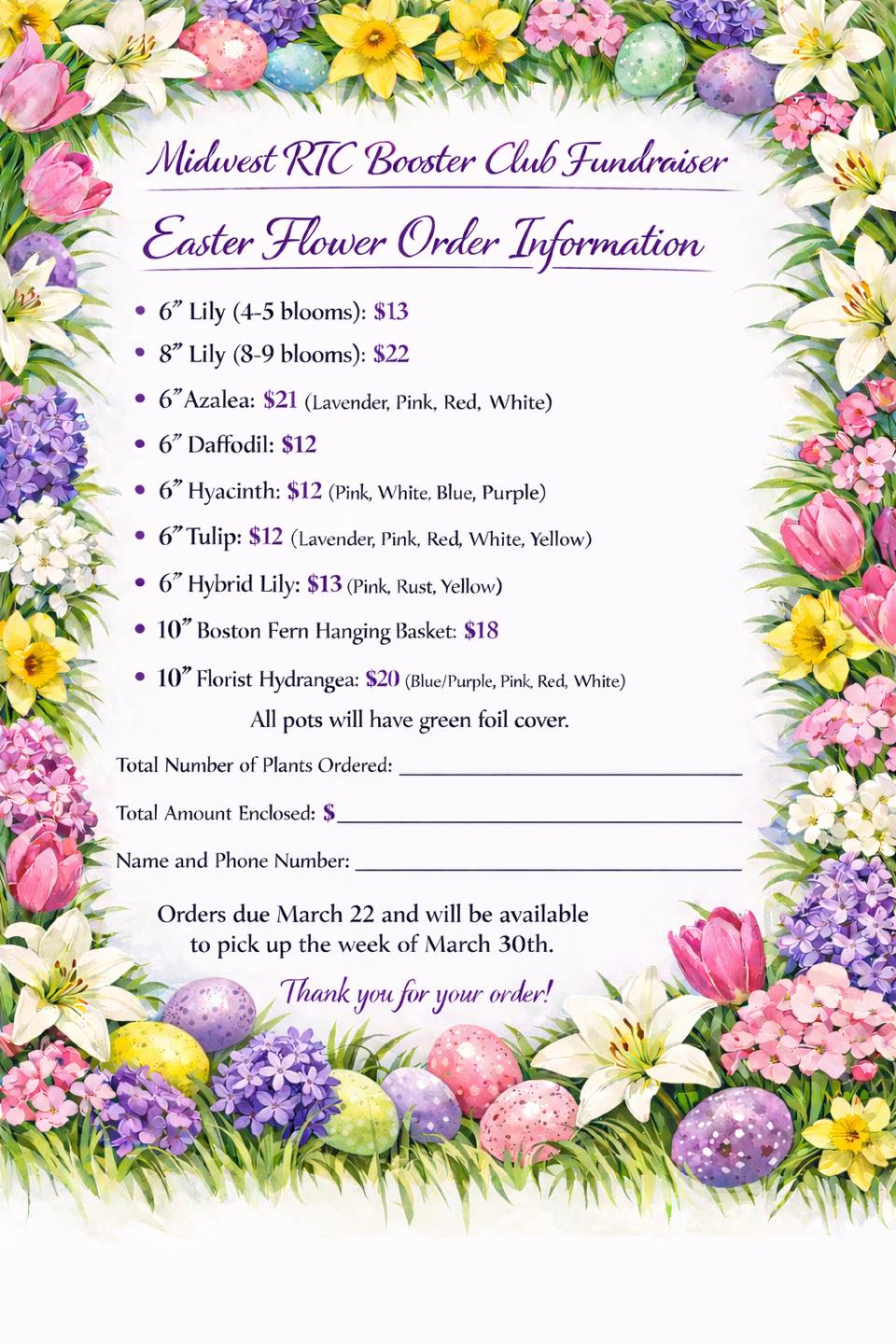 Easter Flower Fundraiser Orders Due